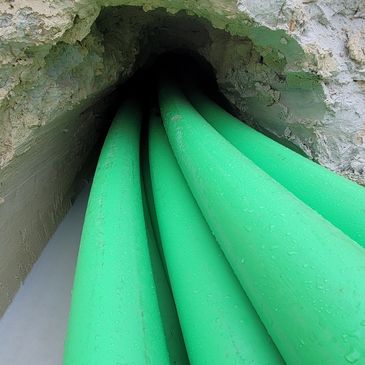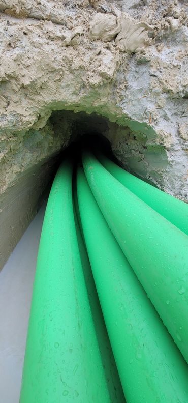Directional Drilling (Horizontal Drilling) allows for drilling under existing services with trenchless boring which means sewer, storm water, commercial power, telephone, gas and water can be positioned under existing services.